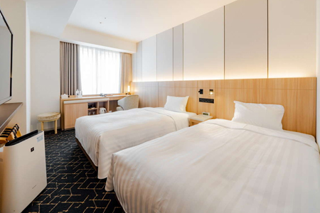 2025年7月全客室リニューアル。1名でも広々滞在できるダブルルームやファミリールームなど多彩な客室をご用