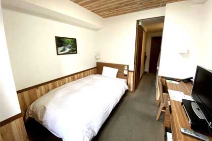 シンプルながら機能的なお部屋でシングルでもゆったり15平米あり。全室シャワーブースのみです。